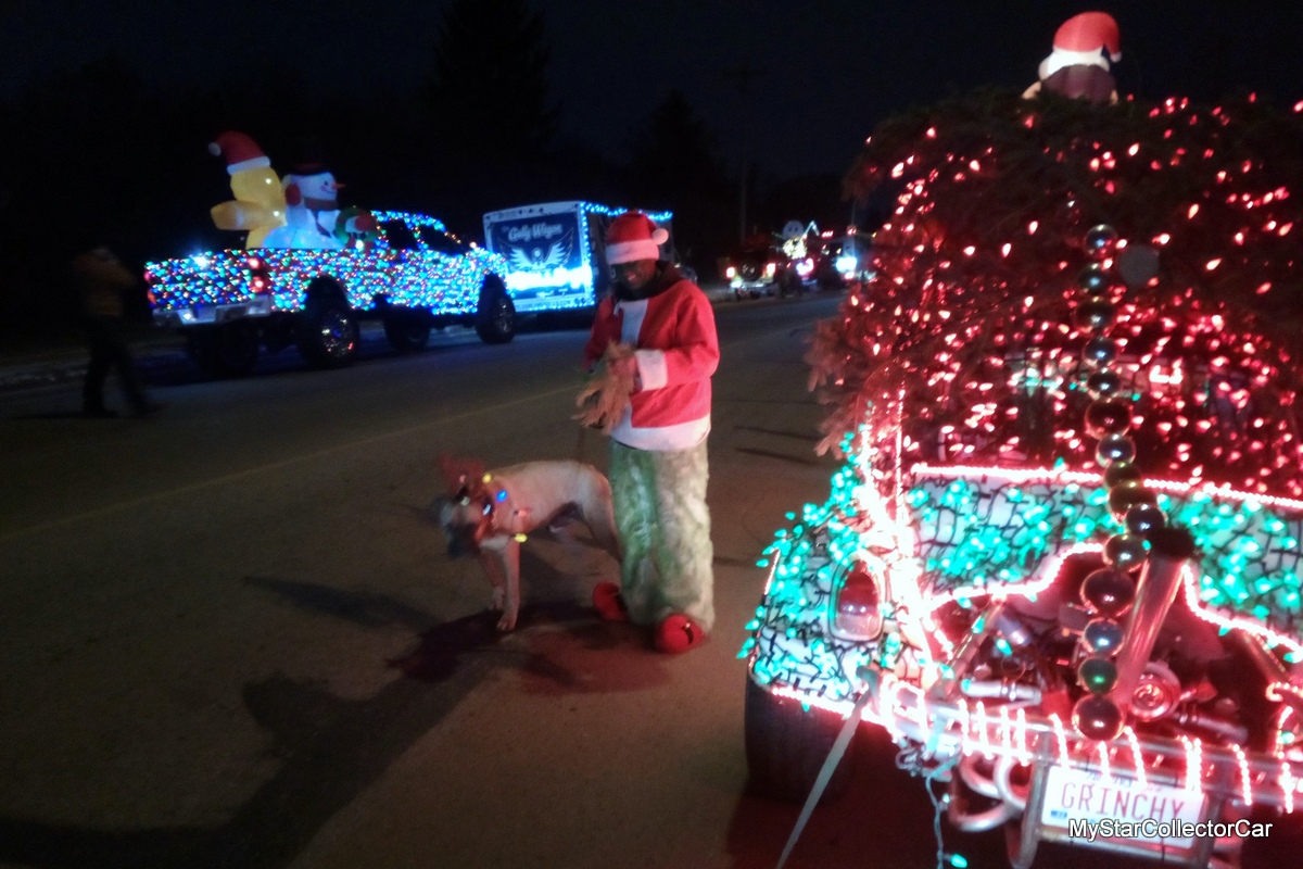 The most notable vehicle in the Lacombe parade was a vintage VW Beetle smothered under a sea of Christmas lights that included a Christmas tree dragged behind the lit-up Bug. The Grinch was driving the outlandish Beetle, and he got a ton of attention from the crowd.