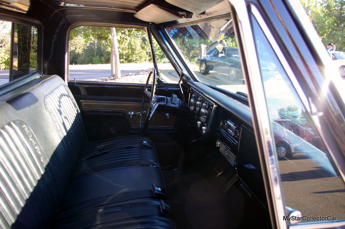 The ’72 Chevy truck still sports its original paint, and it is in amazing condition. The truck’s factory interior is also in excellent shape and shows no signs of excessive wear.