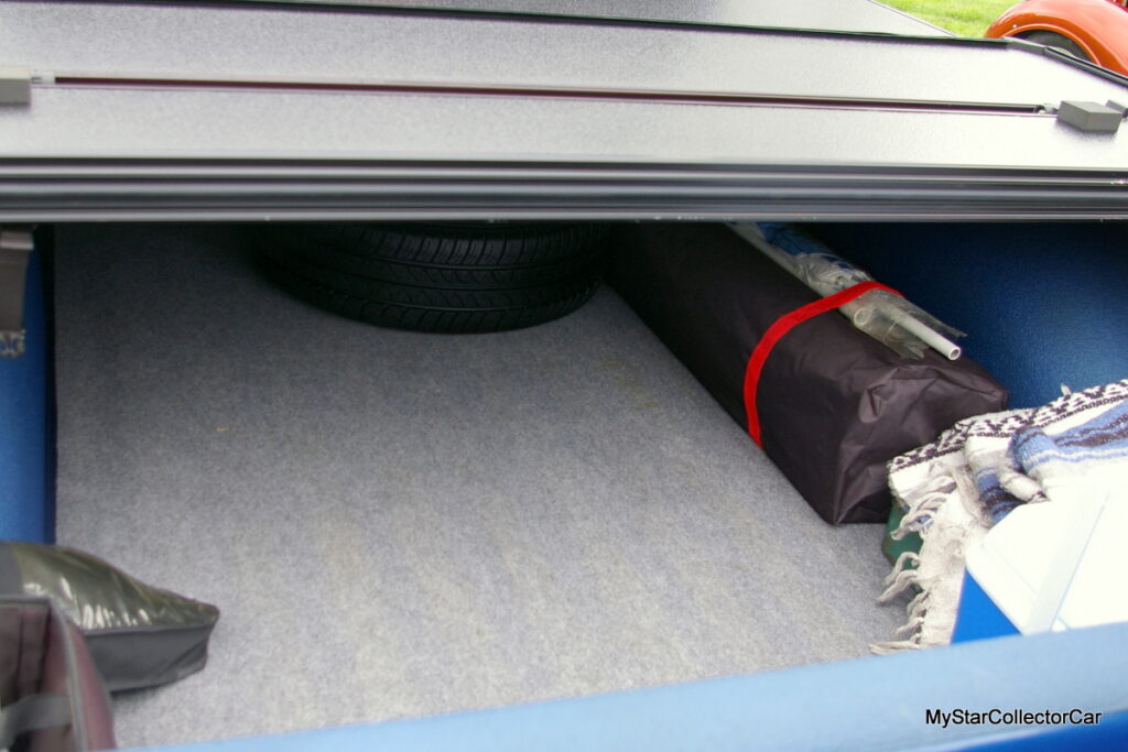 The striking paint job on the 1961 Dodge D-100 is a late model Chrysler color called Deep Water Blue and really pops on it. The truck now sports a bed cover to haul extra gear when it’s on a road trip, a solid improvement that gives it a cleaner look and plenty of secure storage.