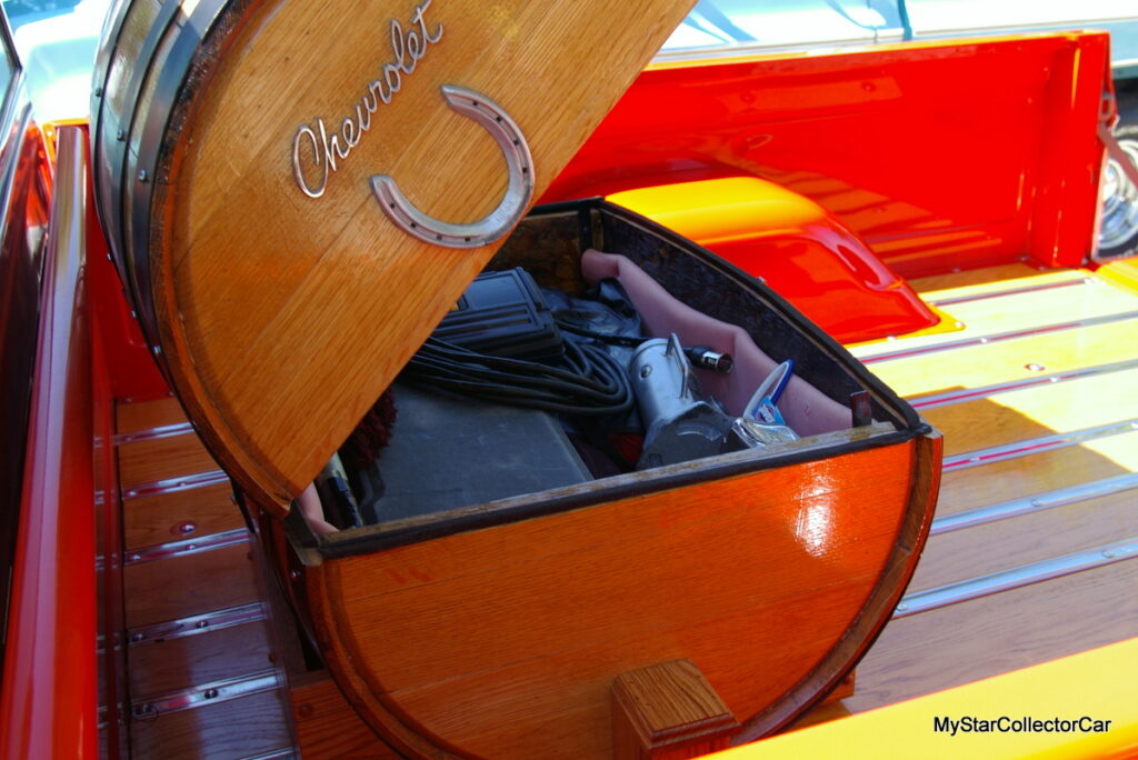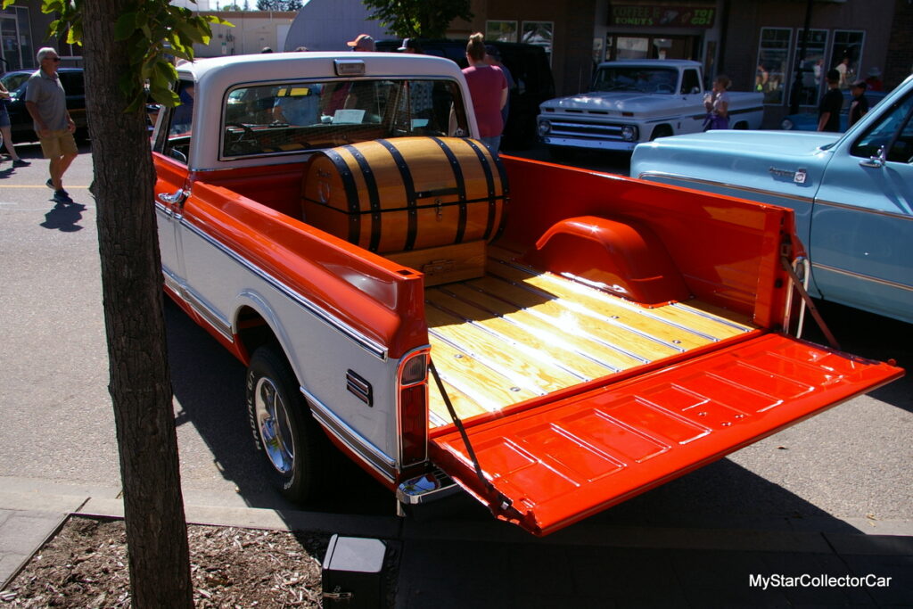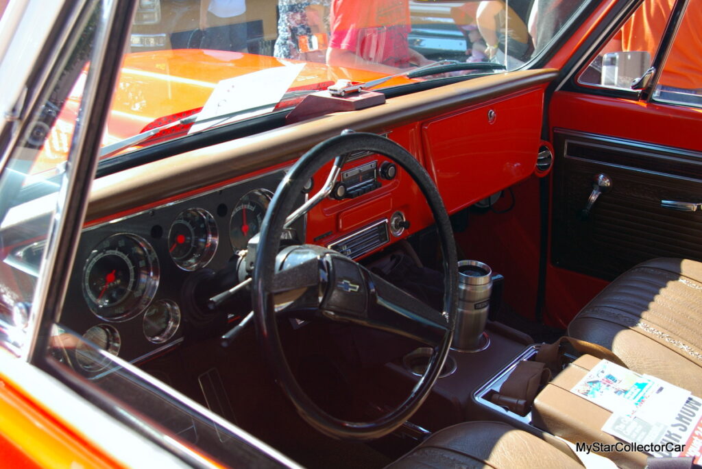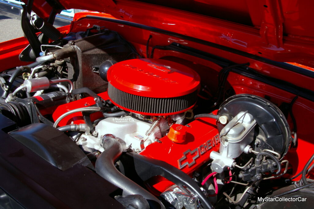 He didn’t want to tinker with his truck too much but decided to add a 700 R-4 automatic transmission with overdrive to drop the RPMs down on the highway. The result is a 55-year-old pickup that is comfortable between 70 and 80 mph (roughly 115-130K) on the highway, according to Jim. Nevertheless, Jim told MyStarCollectorCar his Chevy’s big block engine “likes its fuel”, in his words.