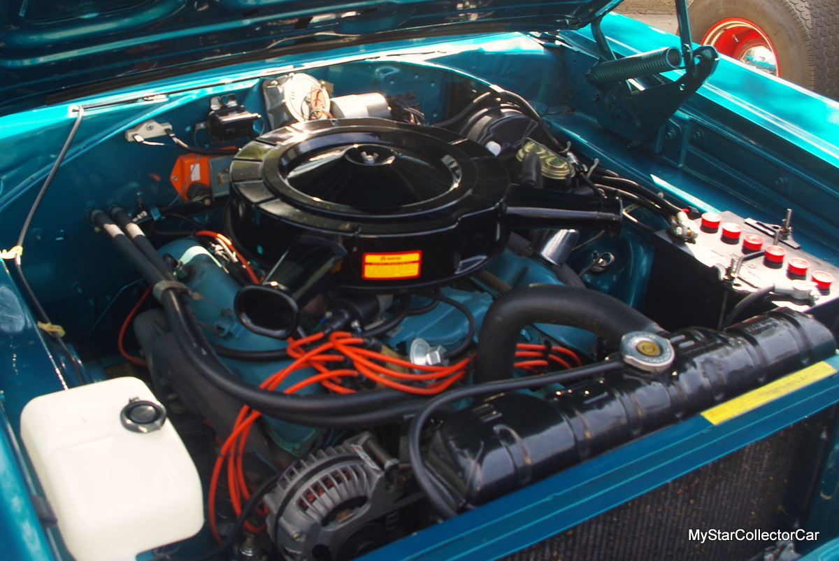 The Coronet came in Turquoise Blue LL-1 Blue–that’s the code Tim insisted on when the paint question came up during the restoration. It also came with the factory certicard, so Tim knows every option on the car is documented.