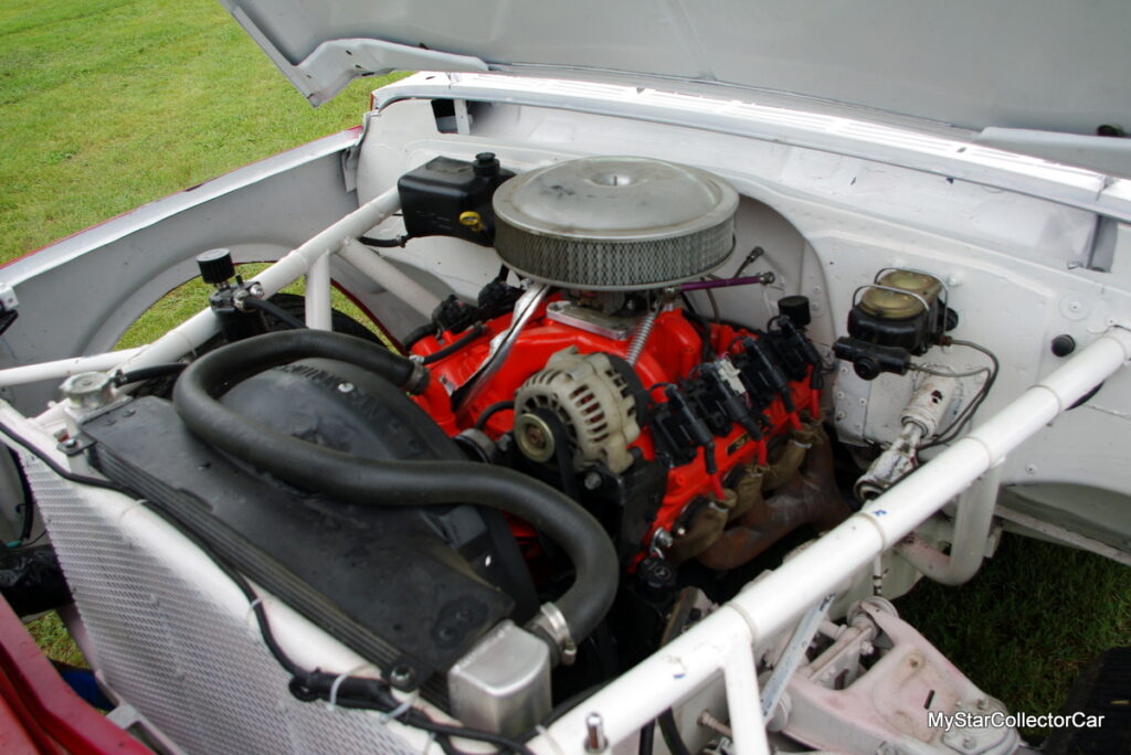 Believe it or not, this truck runs with a manual three-speed transmission, stock exhaust system, and a two-barrel carburetor. It’s not far removed from grandpa’s farm and that’s why Doug’s family is competitive in its class. The fuel tank is where the truck bed used to be in the stock version.