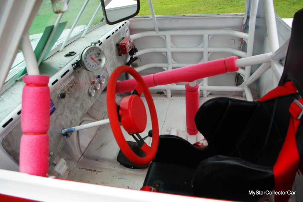 Doug said his GMC was a junkyard disaster when he found it, so he wasn’t worried about putting it on the track where bent metal is just a turn away during a race. Doug’s son handled the mechanical side of the truck, and his grandson did the body work and paint.