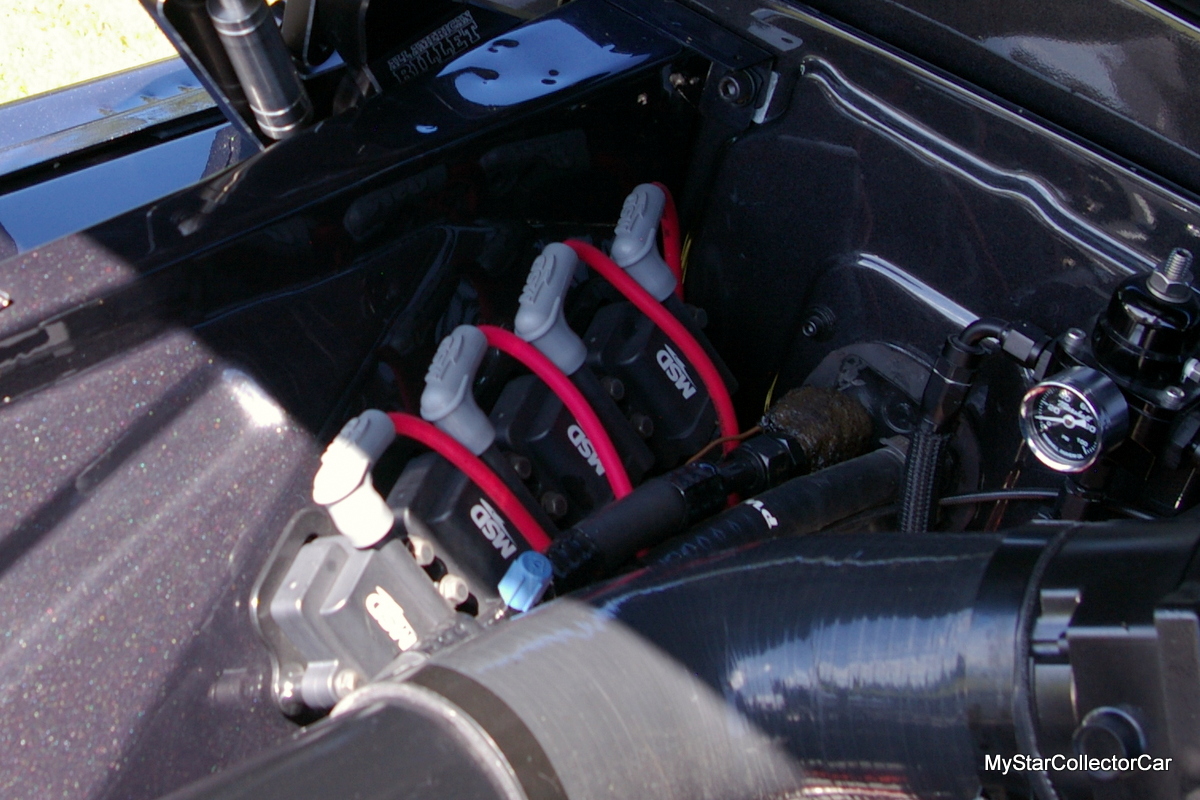 Mark added headers to the LSX engine, along with electric exhaust cutouts to help it breathe very easily when he opens them up on the street.