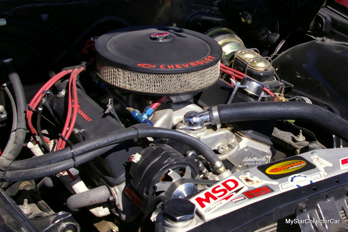 The ’65 Chevy has power brakes with a front disc and rear drum system but does not have power steering, according to Jerry, so he gets a workout every time he uses the steering wheel.