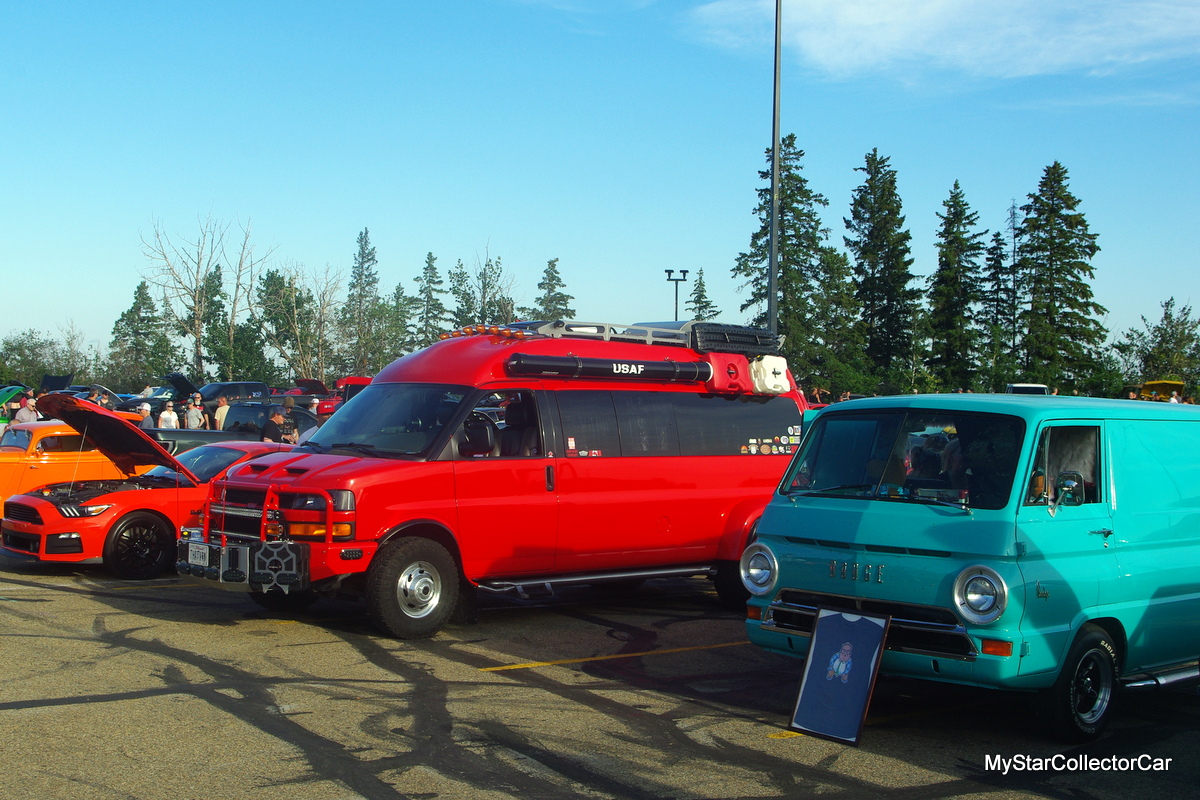 Kim Gault is the owner/builder of this Chevy he nicknamed ‘The Van’. He admitted he didn’t have a defined game plan when he built this RV/post Zombie monster vehicle. Kim said he just wanted a place to stay on one of his many road trips back and forth between Alberta, Canada and Michigan. Kim said he was, “tired of sleeping in his truck”.