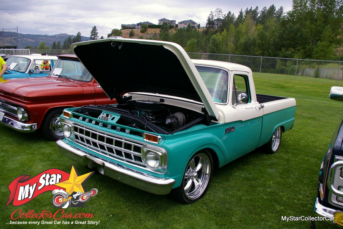 Martin told MyStarCollectorCar his truck had already undergone a restoration 26 years ago and was red when he became its fourth owner 6 years ago. He decided to make some major changes after he bought the ’65 Mercury, including its paint scheme when he put a 2-tone color change on the truck.