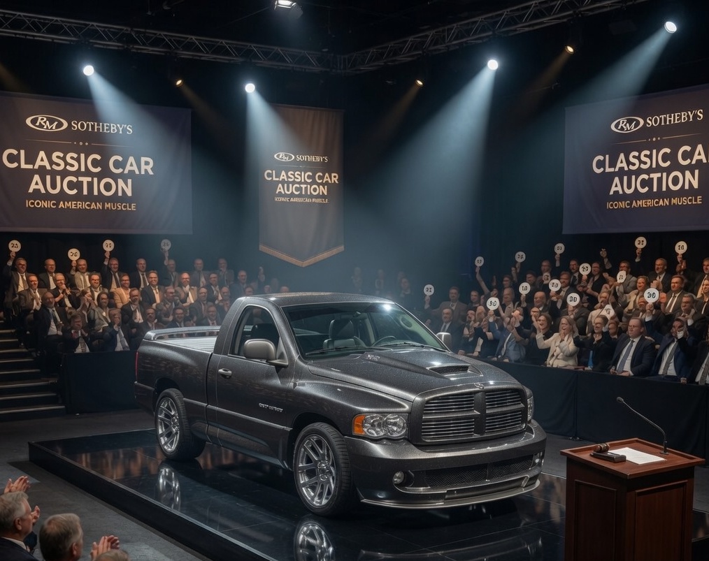 Essentially, Chrysler plunked a 500-horsepower Viper power train under the skin of a pickup truck. The SRT-10 could hit 0-60 in 5 seconds and top out at over 150 miles per hour so that bag of feed is getting to the farm at Warp 10. It was a crazy concept, but crazy concepts have a habit of attracting drunk bidders on an auction floor.