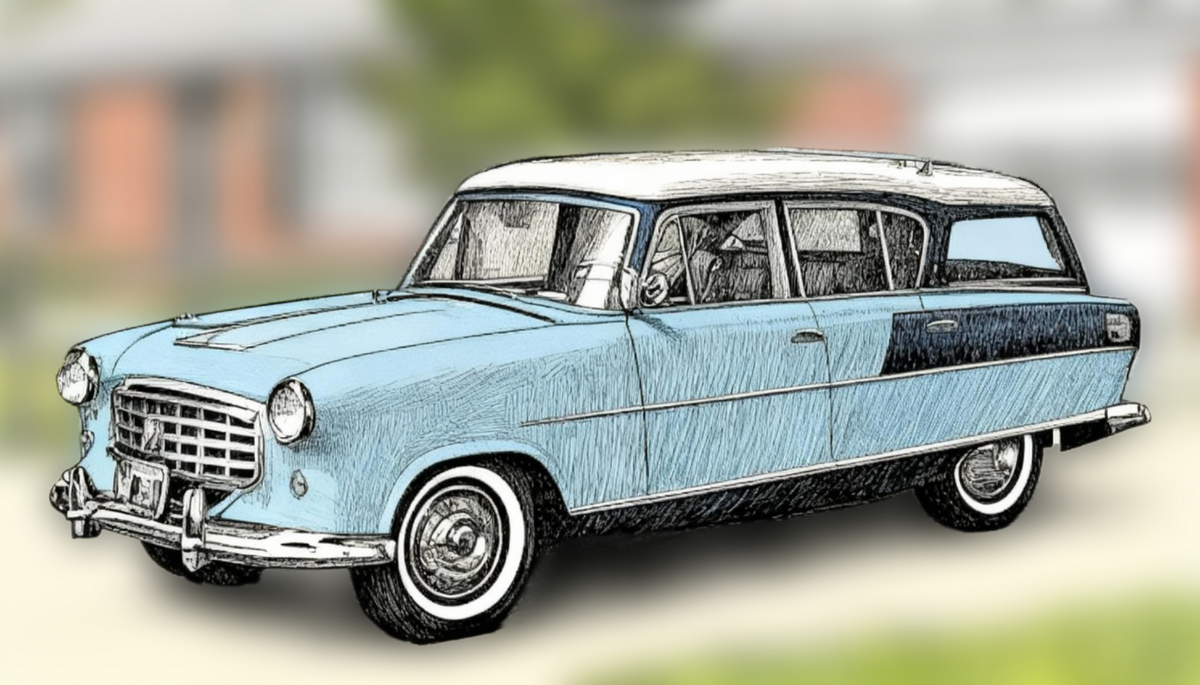 The 1955 Rambler Hudson Cross Country is a good example. You can see the Nash-Hudson roots in this car because it has a Farina-styled, bathtub-like profile that tells the world it’s about function and form.