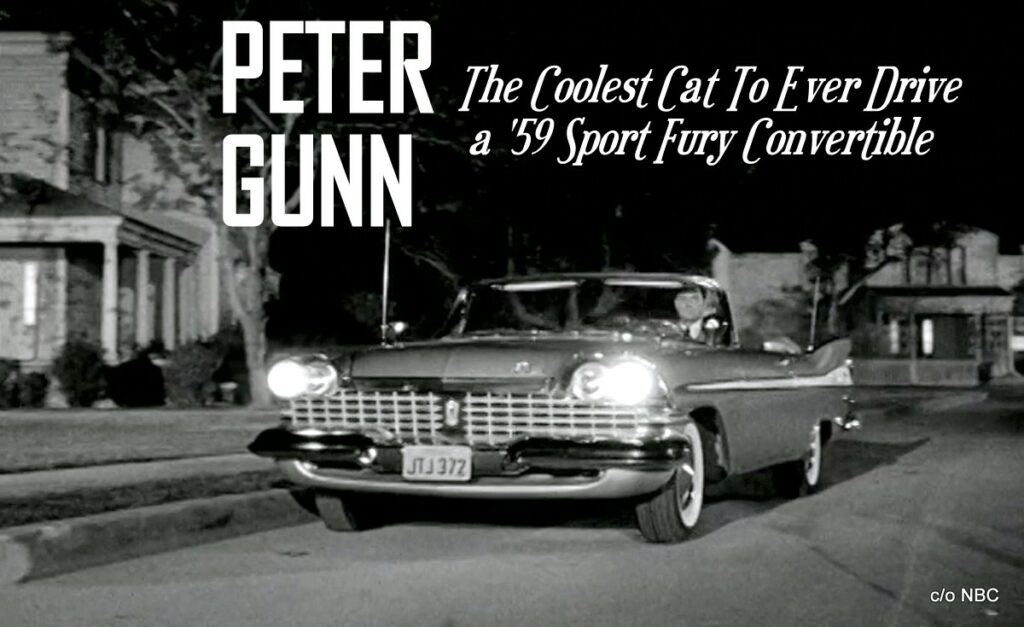 It was a 1959 Plymouth Sport Fury convertible, and it was so cool Peter Gunn was just along for the ride even though it he had his own brand of cool. The ’59 Sport Fury is the apex 50s car in my opinion, and it became Peter Gunn’s signature car for a reason—it was as iconically American as the Statue of Liberty.