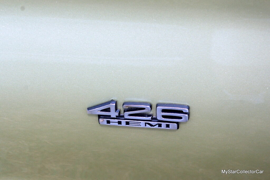 The first 50 ‘Street Hemis’ were called HP2 and that was the badge they carried on the fender. In January 1966, the more familiar 426 HEMI badge was introduced to show the world the hemi was back.