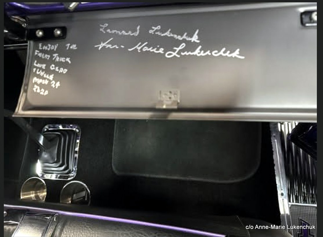 The signatures on the dash from her uncle and grandfather tell the big story.