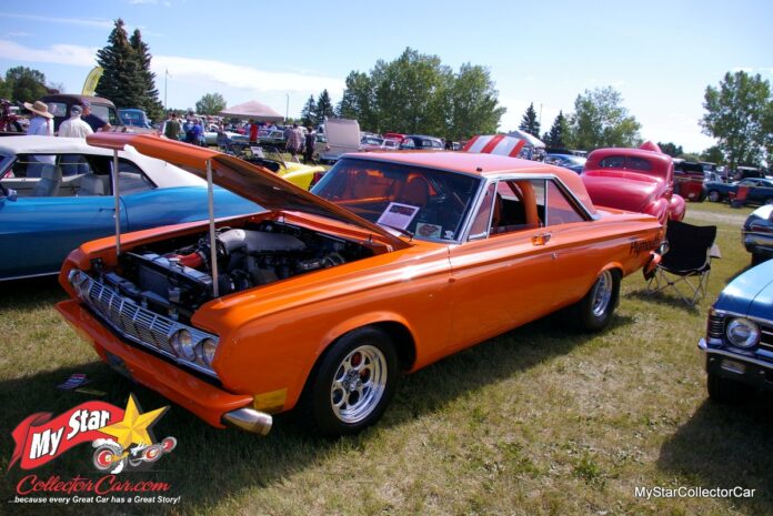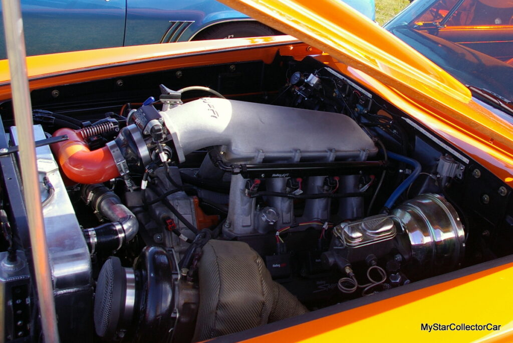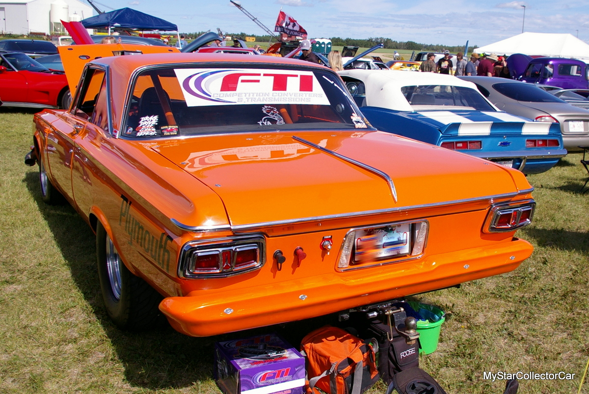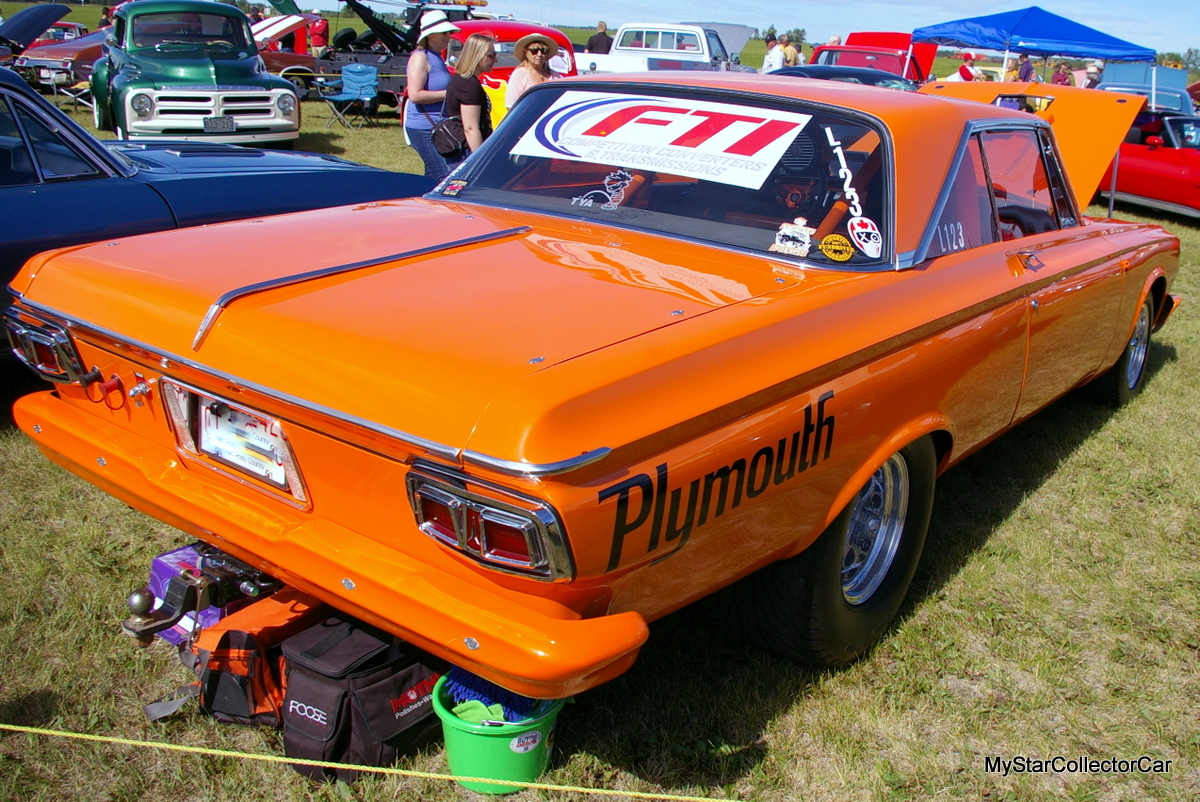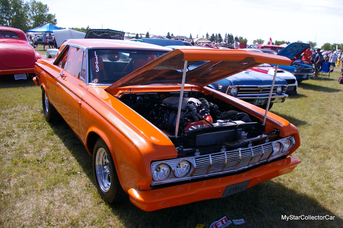 It was difficult not to notice a bright orange 1964 Plymouth Belvedere at a car show with a turbo boost pipe sticking out of its front bumper.