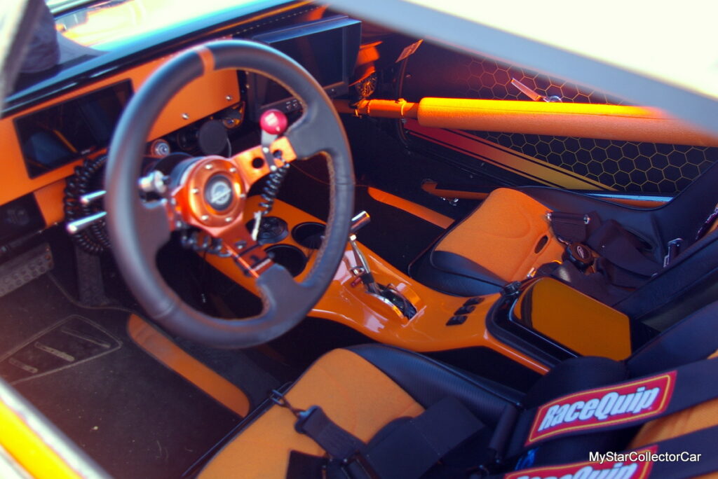 He added a big four-wheel disc brake system to handle the extra horses, along with a digital dash so he can monitor his Belvey’s vital signs, whether on the road or the track.