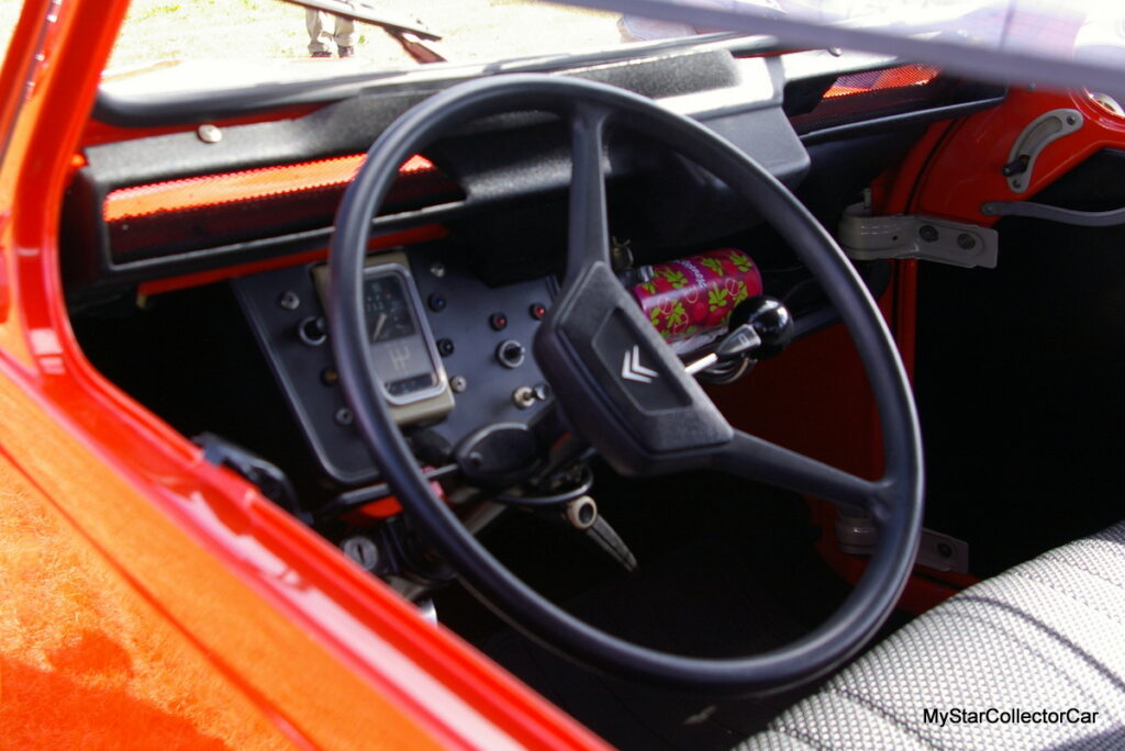 Art filled in a few blanks about the Citroen and told MyStarCollectorCar it has a Ford shade of bright red and was the only year they painted them in this color, according to him. He added the car is a bare bones model sold by Citroen in 1978 with minimal brightwork and a bench seat to keep the price tag down for frugal buyers. It also has flip-out side windows and a large front vent to keep fresh air moving in the passenger compartment, plus the canvas roof retracts to give the Citroen a convertible vibe.