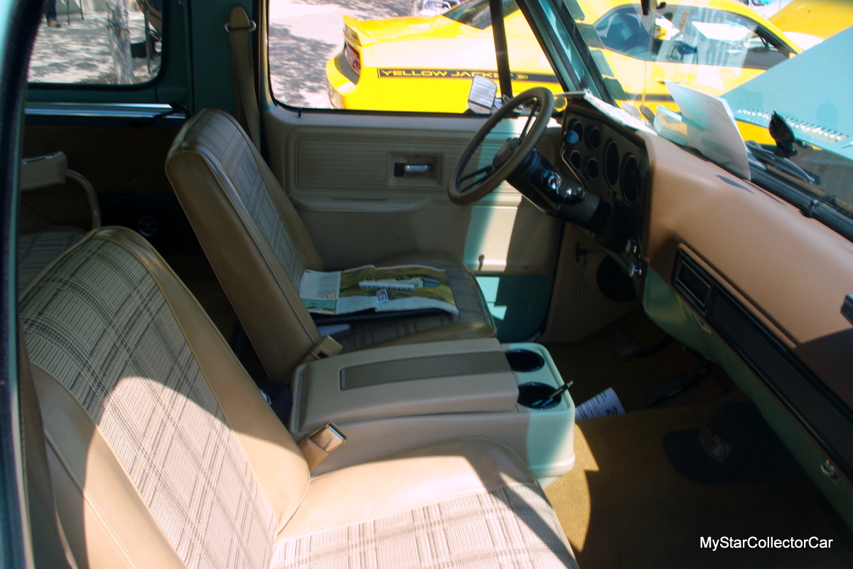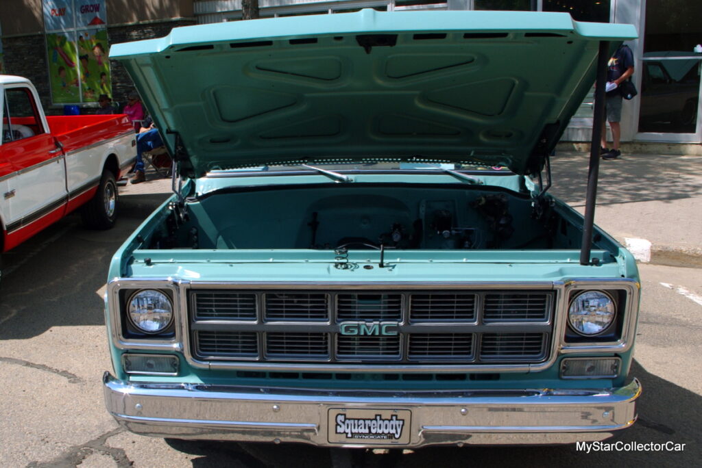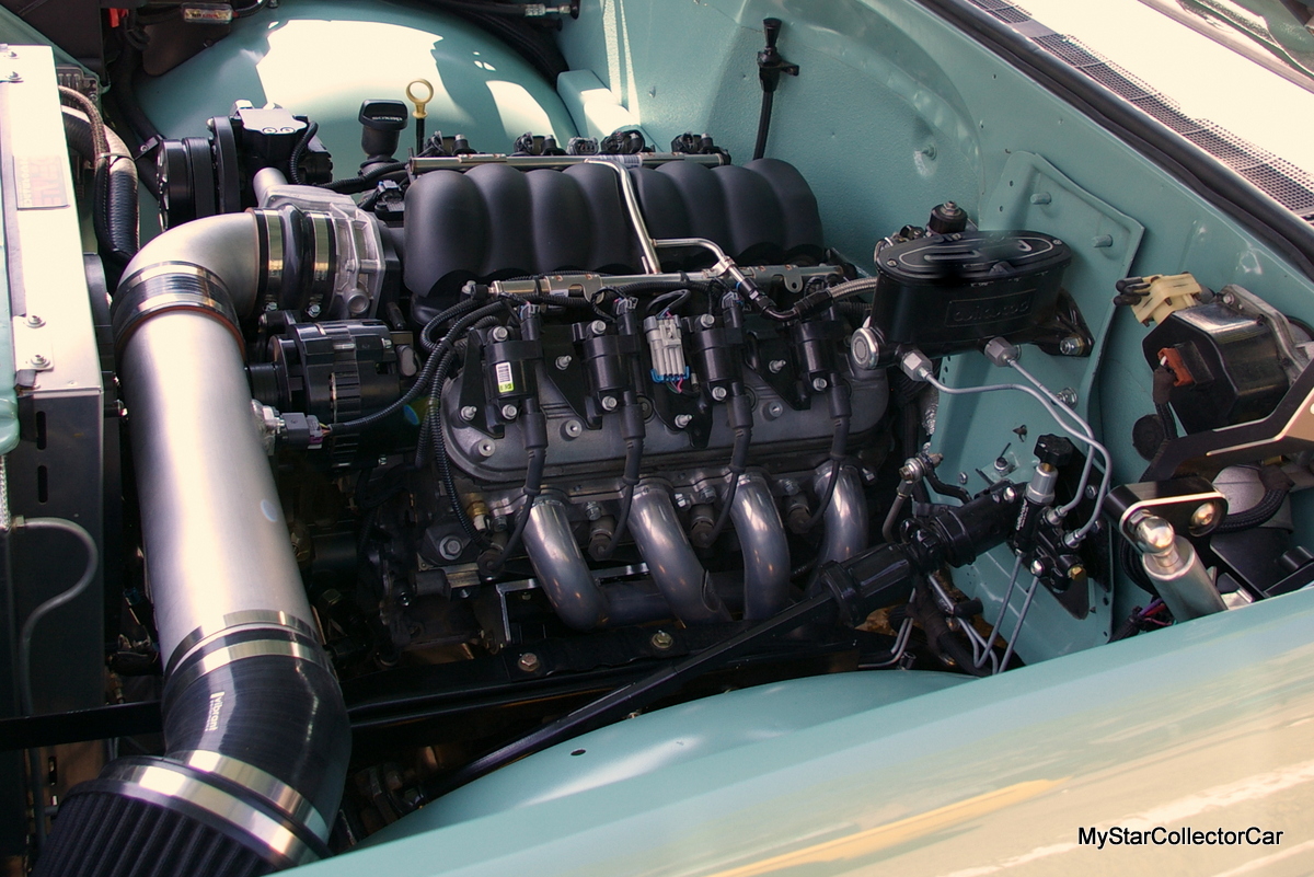 A striking resto mod feature on the Jimmy is its two-tone paint scheme, notably the turquoise color borrowed from a 1957 Volkswagen paint code, according to Dave. He added “the color catches the eye”, an understatement in our opinion here at MyStarCollectorCar.