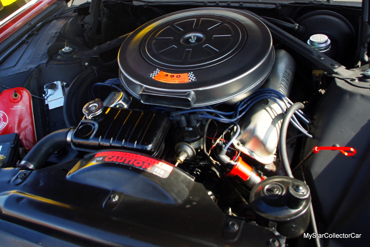 This is a 390 cubic inch four-barrel V-8, so it has the power, but pays for it in gas mileage. The T-bird is close to survivor status, but it has had one paint job in factory Medium Chestnut Red.