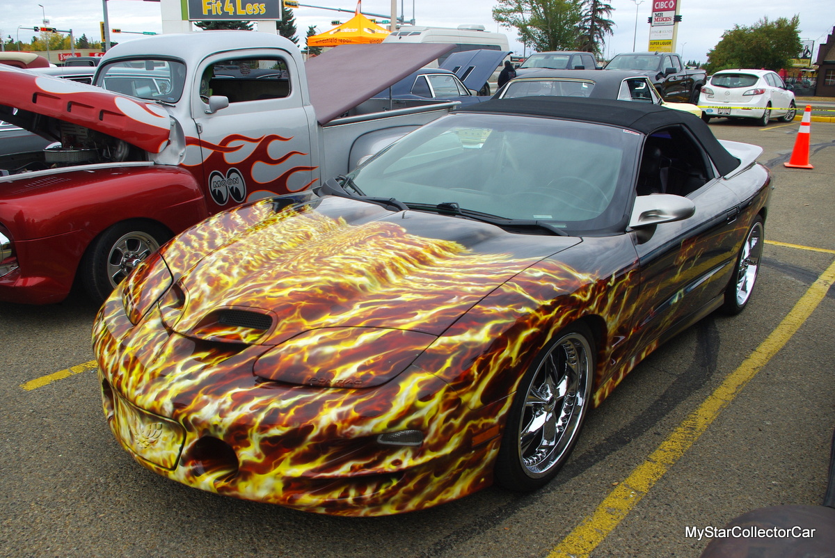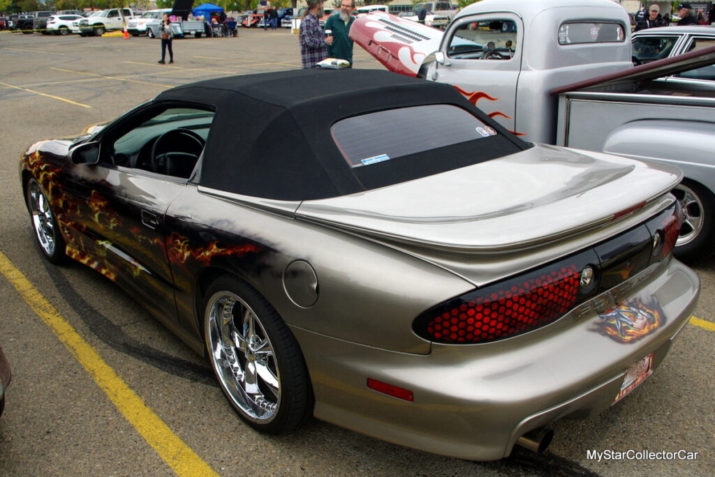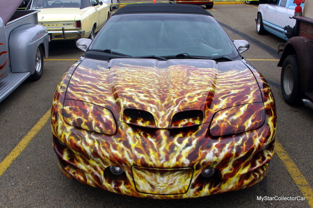 Tennille wanted to give her car a distinctive look with a custom fiery bird of prey on the TA’s front clip, but her custom painters chose to create a fiery inferno pattern on her convertible. Tennille was unsure about the flame graphics, but they have grown on her over the years.