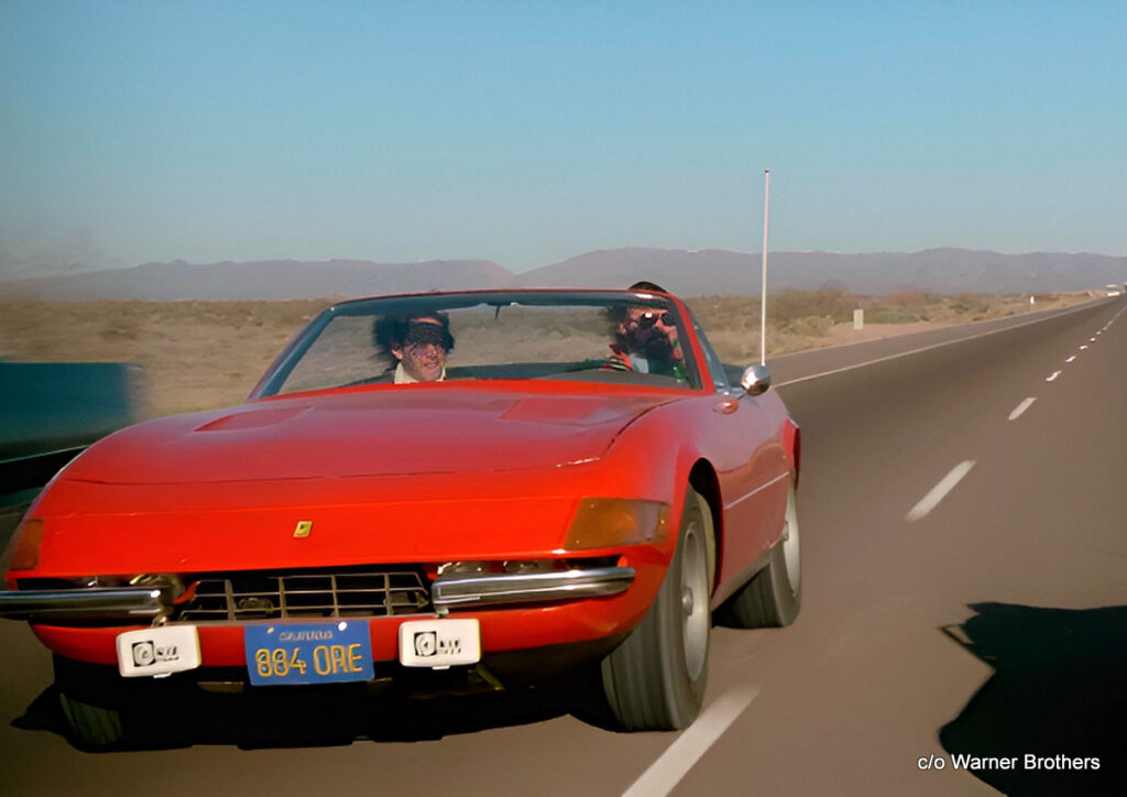 The second car star in ‘The Gum Ball Rally’ was a 1974 Ferrari Daytona supercar that was a match for the mighty Cobra in the long road race and could hold its own at high speeds.