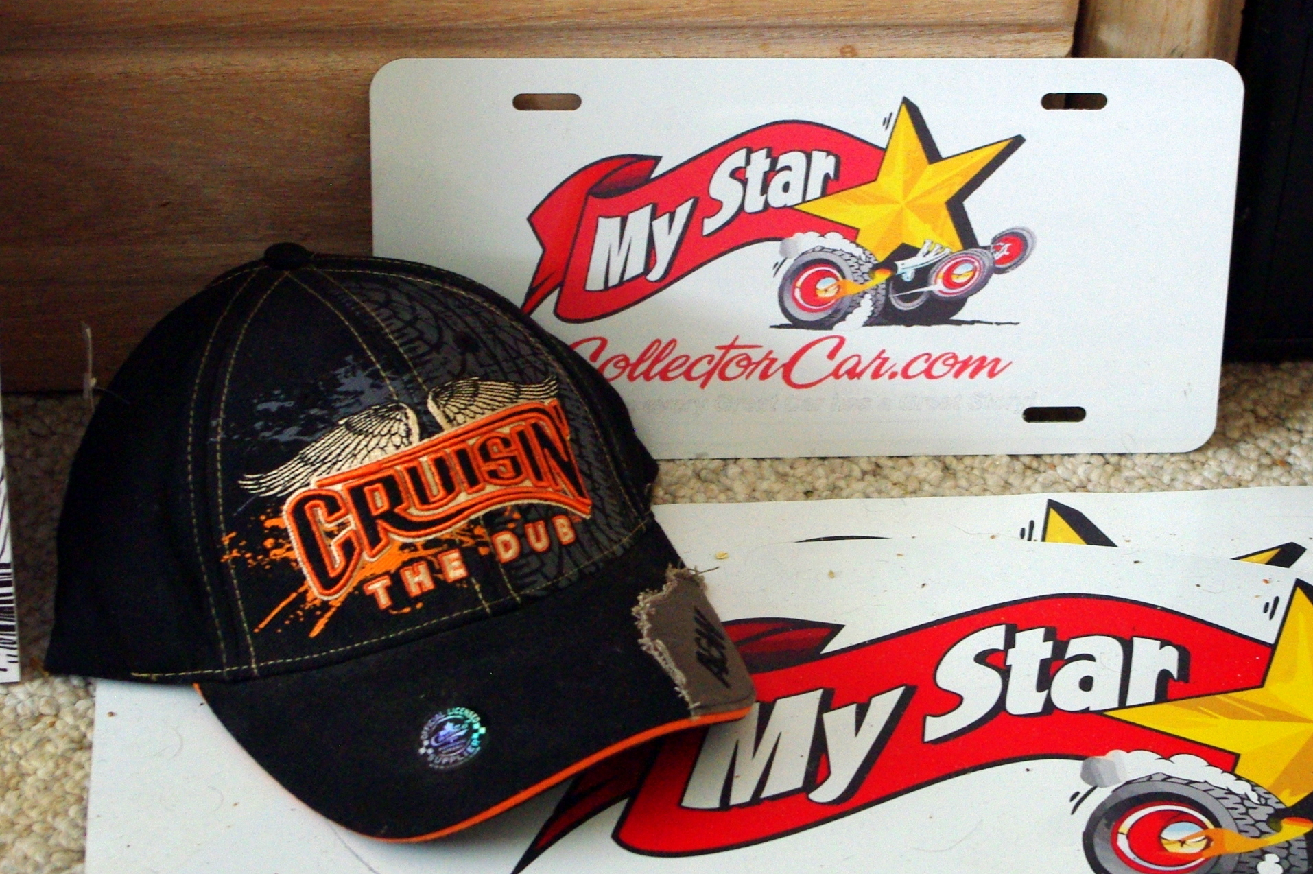 This is the February 2026 monthly draw prize for annual subscribers. It’s a MyStarCollectorCar license plate (you can only win these–you can’t buy them) plus an A&W Cruisin’ the Dub Hat–you can’t buy those either.