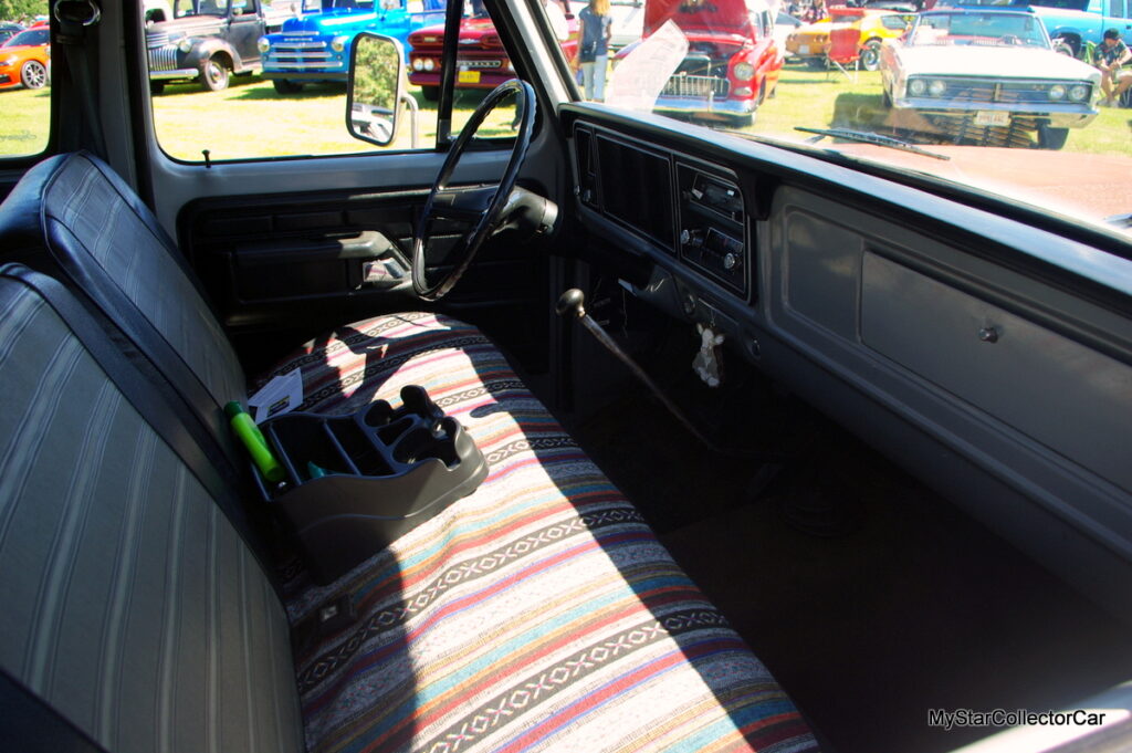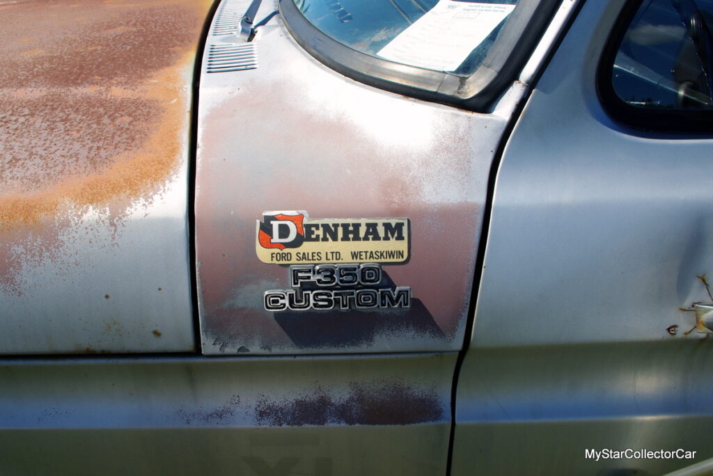 Everything points to this ’77 Ford being a work or farm truck because it’s heavy duty and came with a factory four-speed manual with a ‘farmer-low’ first gear. It has clearance lights and payload markings so this old F-350 had a brief, but hard life.