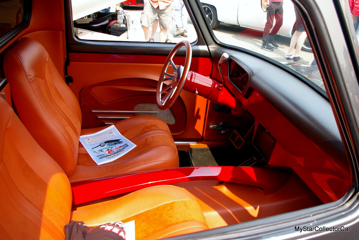 Randy put all the modern touches in his truck, including power/tilt steering, power windows, leather seats, along with AC and cruise control. In effect, the truck is a modern vehicle with a very cool retro design.