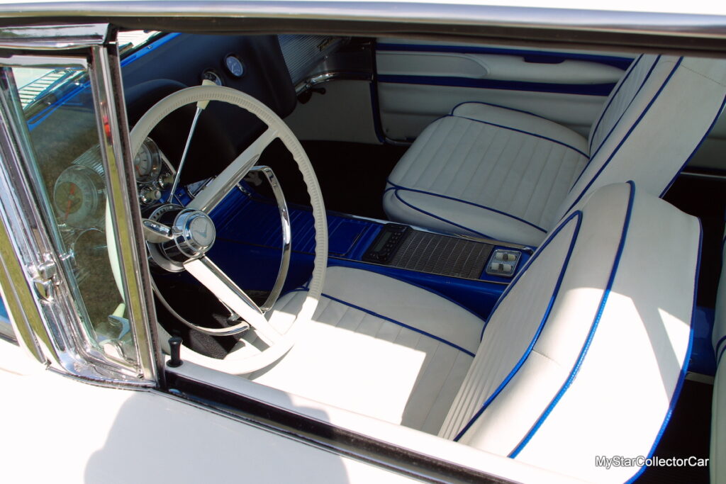 The J-code 430 Lincoln big block under the hood also got some attention. It was completely rebuilt plus they added a three-deuce carburetor setup to make this T-bird very unique.