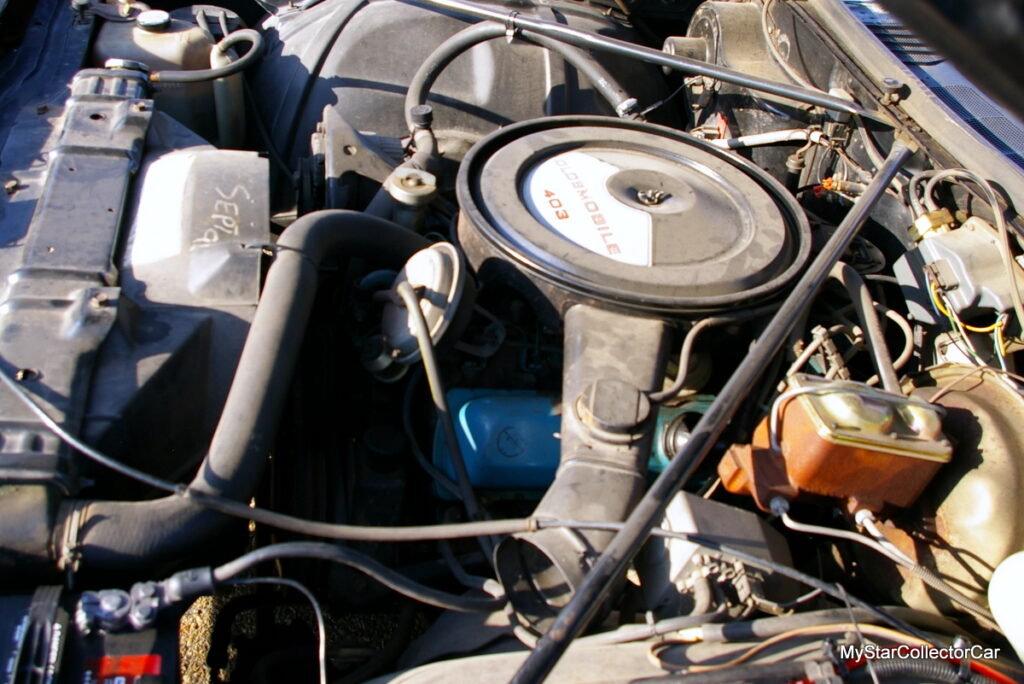 Wade’s high end Olds Cutlass has a factory 403 cubic-inch engine that was also used by other GM marques such as Pontiac during the late 1970s. The 403 offered above-average performance during an era when horsepower was not king in domestic cars.