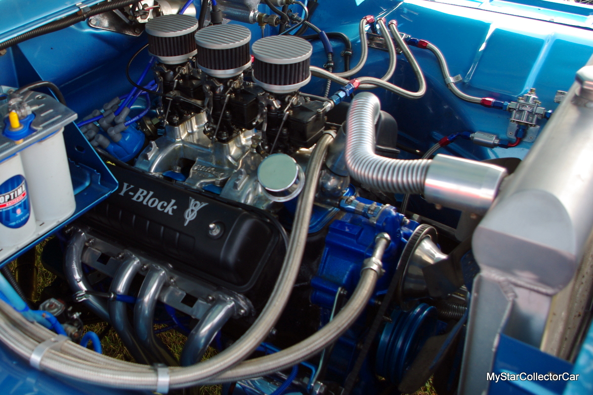 That was the push Tom needed to get this classic truck back on the road. He went from a stock 272 cubic inch V-8 to a 312 because he wanted more power. He doubled down on that concept when he added a triple-carb setup to the Ford small block.