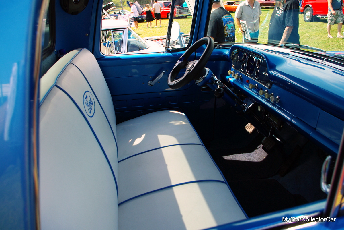 Tom picked a Corvette code for the blue paint, and he completely redid the interior to a full color-coordinated custom because he wanted to add his own style to the truck.
