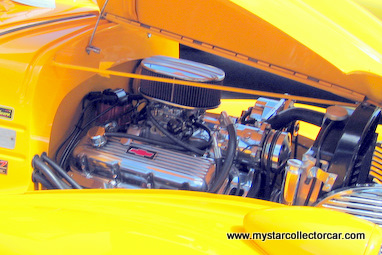The 427 Corvette big block engine gets this pre-war Chevy down the road in a hurry.