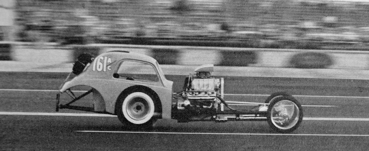 It had a dragster chassis, plus the doors welded were up and cut out for rear wheels. This saved weight and the body sat on an altered wheelbase.