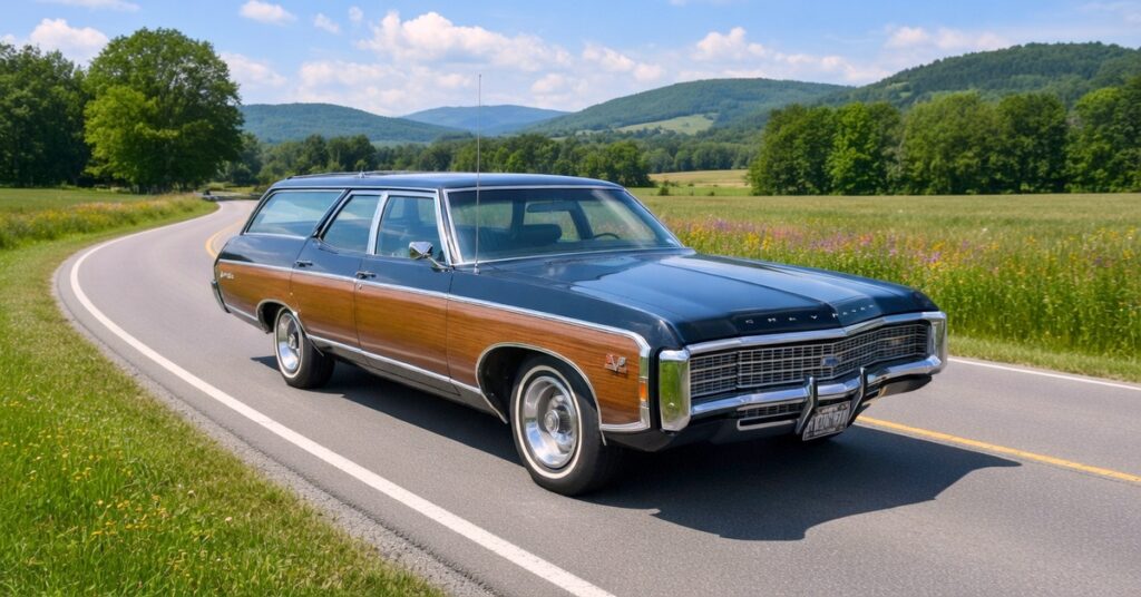 The big Bowtie wagon was a true land yacht with enough room for the Waltons, but the hidden headlight option made the ’69 Chevy Caprice Kingswood one of the coolest family chariots on the planet that year.